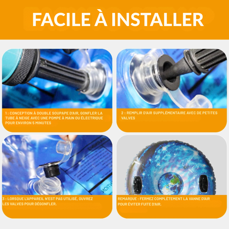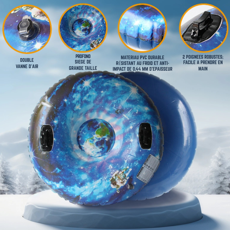 Découvrez la bouée de neige gonflable grand format 120 cm signée MAKE WAVES, conçue pour offrir un maximum de plaisir lors des glissades hivernales. Avec son design unique inspiré des étoiles et de l’univers spatial, elle transforme chaque descente en une aventure inoubliable. Idéale pour les enfants comme pour les adultes, cette bouée peut aussi être utilisée comme bouée de piscine l’été, faisant d’elle un accessoire polyvalent.