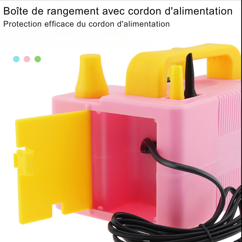 Optimisez vos préparatifs d’événements grâce à cette pompe électrique multifonction pour ballons. Avec sa puissance de 600W et son double moteur, elle permet de gonfler rapidement plusieurs types de ballons (latex, à longue tige, aluminium). Idéale pour les mariages, anniversaires, baby showers ou événements professionnels, elle réduit considérablement le temps de préparation tout en assurant un gonflage uniforme.
