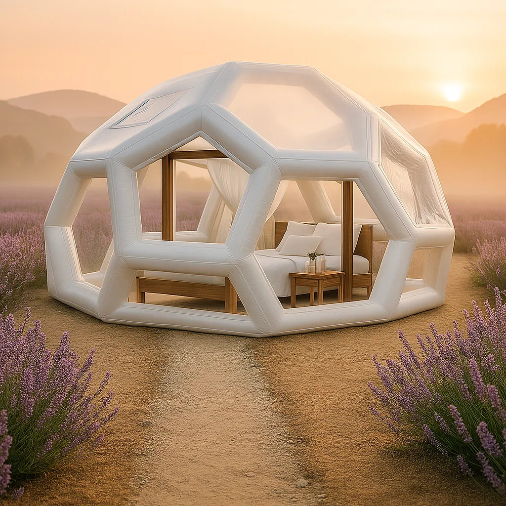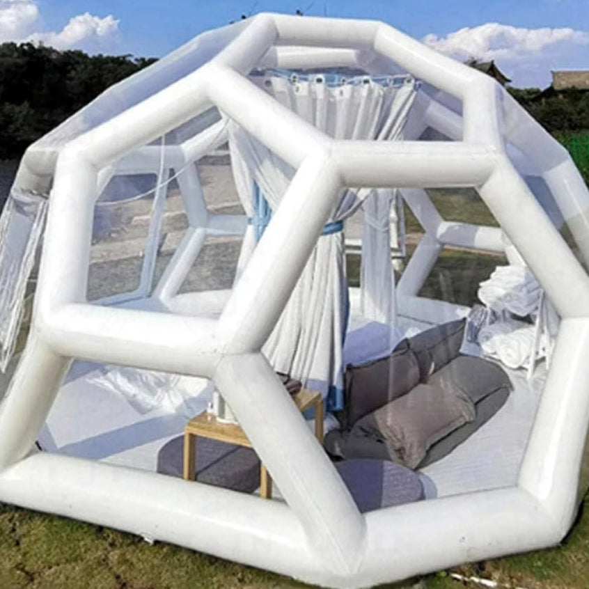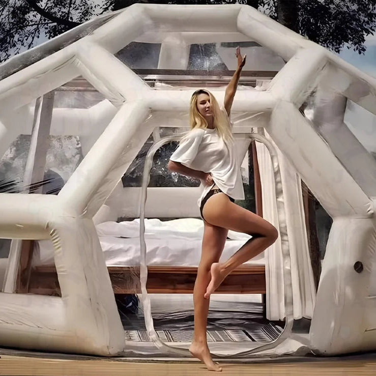 Cette tente est idéale pour créer un espace unique dans votre jardin, sur un terrain de camping ou pour des événements en plein air. Son design moderne et sa structure gonflable en font un abri à la fois fonctionnel et spectaculaire.